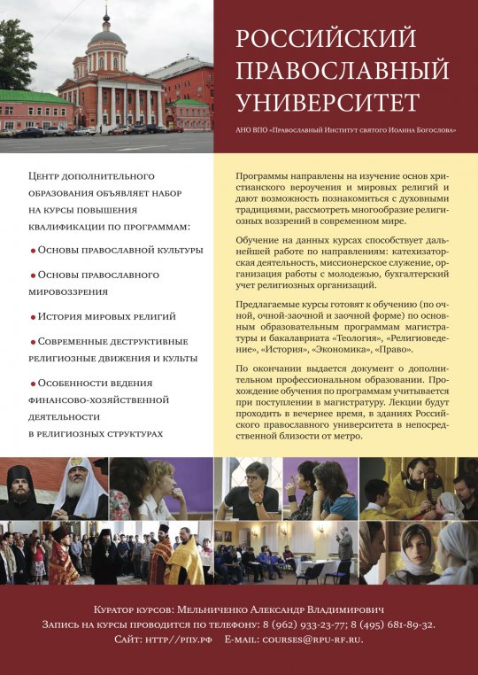 Программа повышения квалификации, реализуемая в рамках основного направления подготовки бакалавриата "Религиоведение", "Теология".