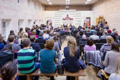 Небольшой актовый зал вместил более ста человек. Организаторам то и дело приходилось приносить новые стулья, а гости все прибывали. Собираться начали за час до начала встречи.