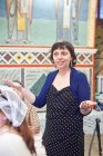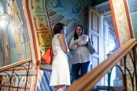 Для них была подготовлена не только дружеская трапеза, в ходе которой выпускники смогли в неформальной обстановке поделиться своими воспоминаниями и обсудить перспективы, но также была организована и обзорная экскурсия по монастырю, которую для них провел замдекана факультета Церковного служения РПУ иеродиакон Лаврентий (Полешкевич).