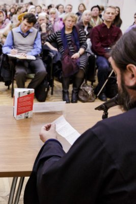 Говорил на презентации и главный редактор издательства “Никея” Владимир Лучанинов. Свое слово каждый выступающий начинал с извинений, что отнимает время у автора. Забегая вперед, можно сказать, что желающих поговорить с протоиереем Андреем Ткачевым было столько, что времени все равно не хватило бы до самого утра.
