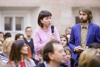 Небольшой актовый зал вместил более ста человек. Организаторам то и дело приходилось приносить новые стулья, а гости все прибывали. Собираться начали за час до начала встречи.